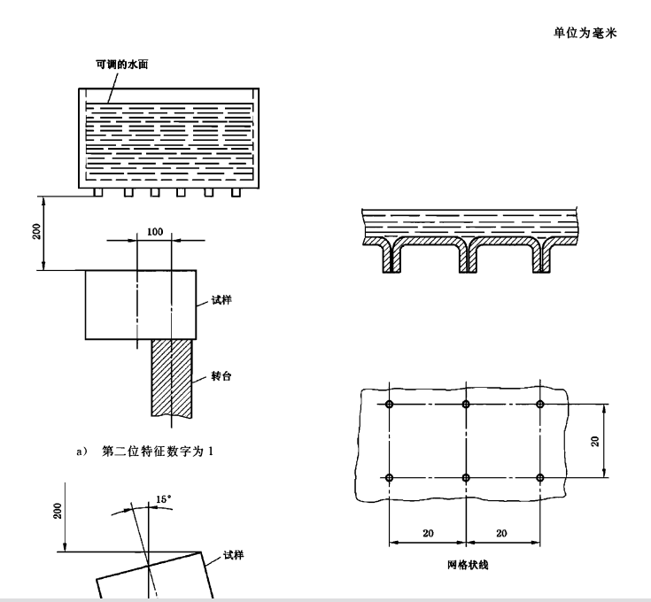 不同于第二位特征數字為1的試驗,支承外殼的臺不旋轉。