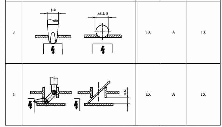 驗證防止人接近危險部件的試具按表6 規定。