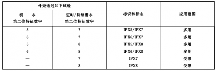 IPX5/IPX7——針對不同的作用,給出防噴水和防短時間浸水的兩種不同的防護等級。