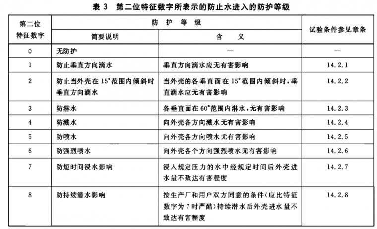 一般說來,如果進水,應不足以影響設備的正常操作或破壞安全性;水不積聚在可能導致沿爬電距